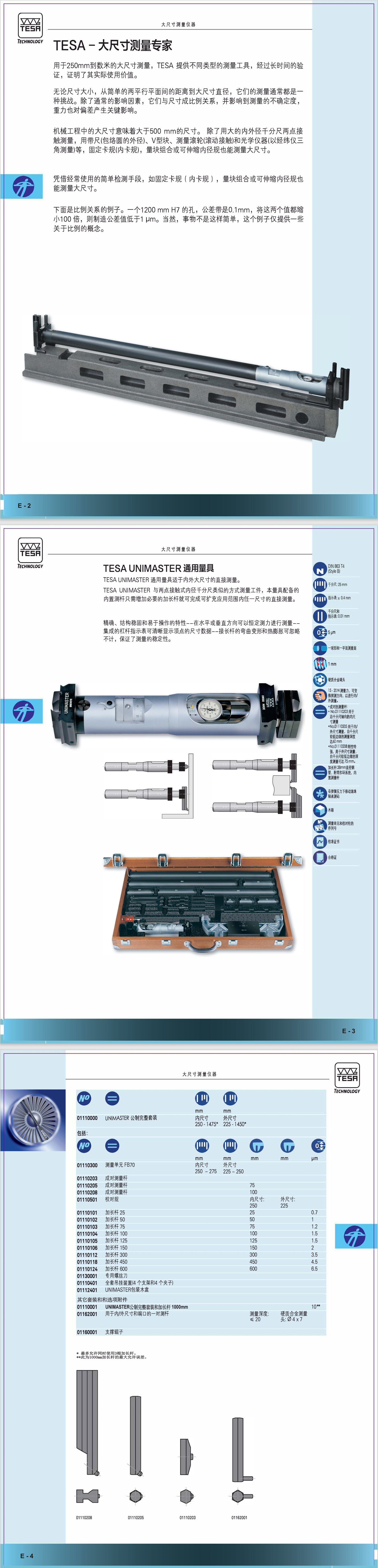 TESA UNIMASTER与两点接触式内径千分尺类似的方式测量工件,本量具配备的内置测杆只需增加必要的加长杆就可完成可扩充应用范围内任—尺寸的直接测量。