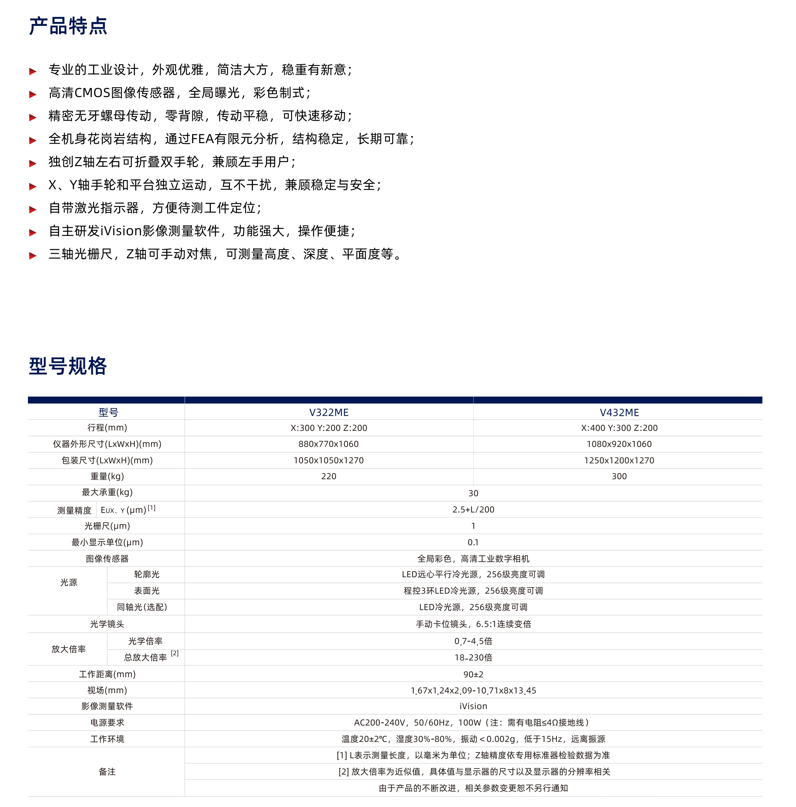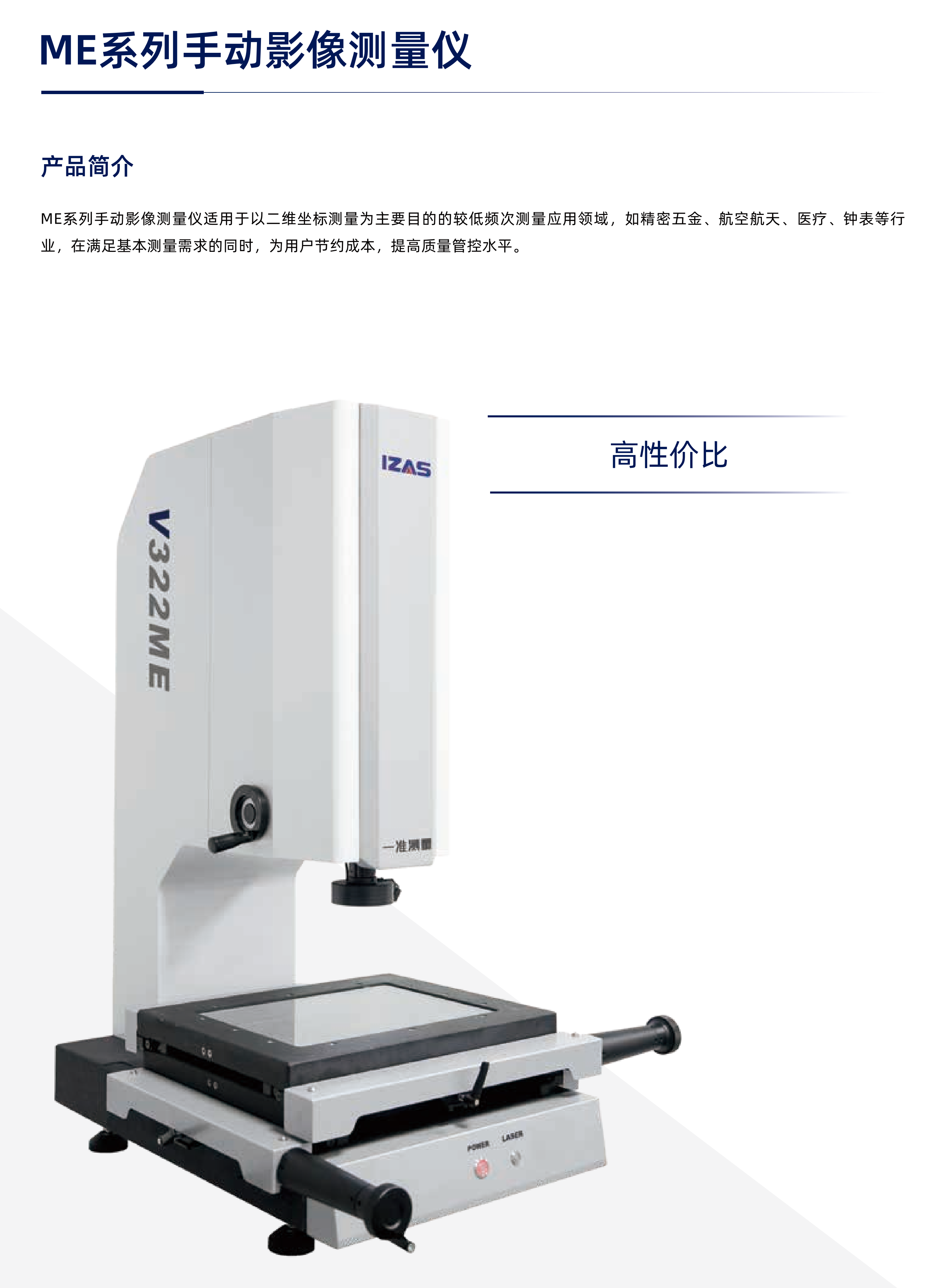 V322MEME系列手动影像测量仪适用于以二维坐标测量为主要目的的较低频次测量应用领域,如精密五金、航空航天、医疗、钟表等行业,在满足基本测量需求的同时,为用户节约成本,提高质量管控水平。
